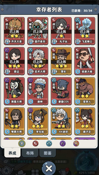 角色更换操作共分三步:第一步,点击游戏主界面底部导航栏中的“幸存者”入口;第二步,在幸存者管理页下滑至页面末端,点击“布阵”按钮进入编队界面;第三步,在当前已部署的五人阵容中,点击任一已上阵角色头像,系统将自动跳转至替换选择页。