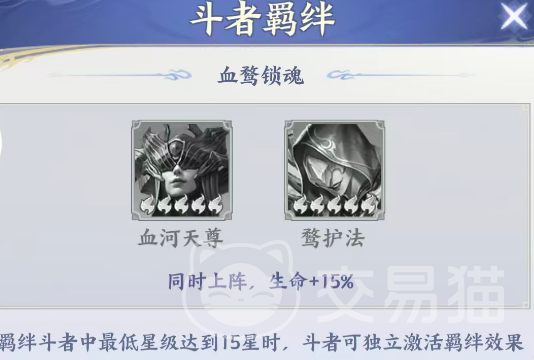 天赋系统为其提供阶梯式属性强化:3阶激活攻击+350、生命+3200;5阶起暴击率提升9%;红2星阶段攻击百分比加成达10.5%。多层级数值堆叠显著放大其输出潜力。阵容配置方面,推荐与鹜护法协同上阵,触发专属羁绊“血鹜锁魂”,为双方提供15%生命加成。该羁绊在羁绊成员星级未达15星前尤为关键;当任一羁绊角色星级达到15星后,羁绊效果可独立生效,但前期仍建议双人组合以最大化战力释放。