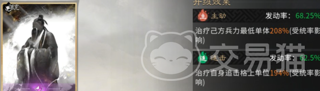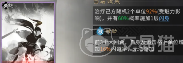 高顺承担整套体系的节奏驱动职能。其天赋“统兵列阵”可在战斗初始即为全体友方单位施加“统兵”状态,并同步将队伍格挡率提升至满值,显著增强前中期承伤能力。觉醒技能“陷阵之志”为核心引擎:一方面可叠加“统兵”层数以持续强化防御,另一方面具备概率触发我方召唤物二次行动的能力,配合主动技能使用,可在队伍血量偏低时实现精准治疗,形成攻防节奏闭环。