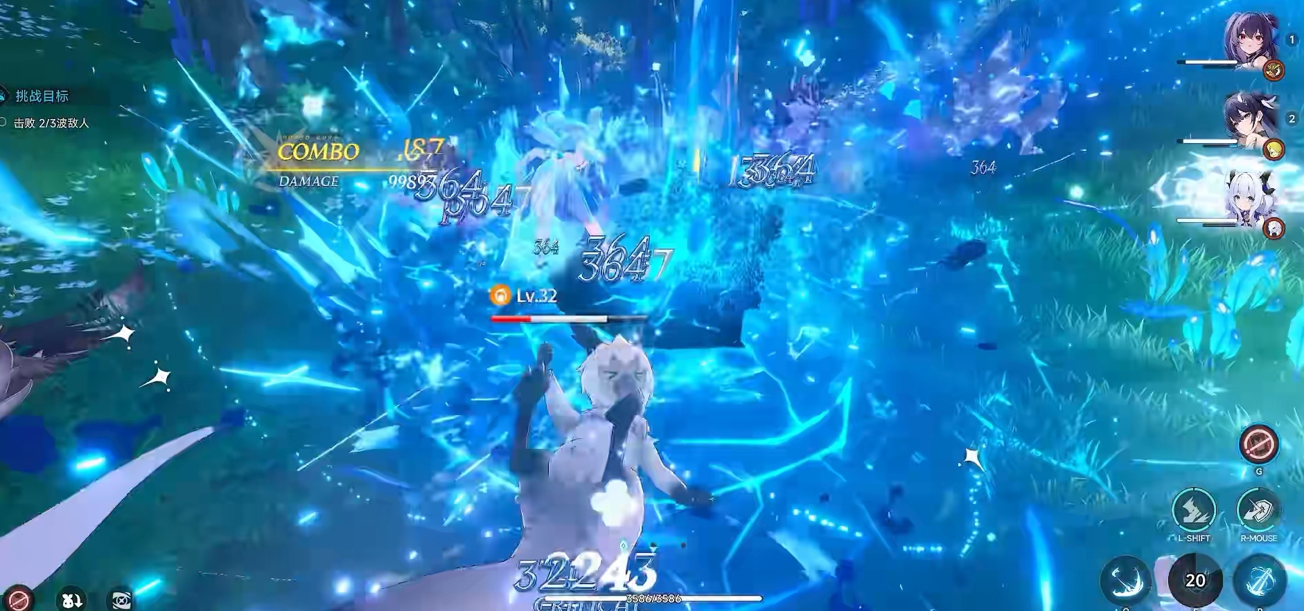战斗前请确保奇波技能已全部装配完毕。推荐配置为洛卿、末音与阿比三人组合。任务开启后,首阶段需连续应对三波敌群,每波敌人数量较多。开局优先部署洛卿,其起手结界技能兼具8秒减伤效果与水元素印记施加能力,能有效压制小怪并清理干扰单位。