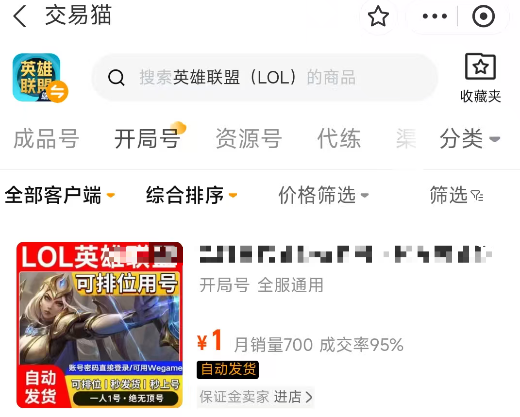 由于英雄联盟的单个账号培养等级太慢了,很多玩家会选择临时购买一个开局号,这类账号虽然没有任何的皮肤,但是等级是足够的,而且英雄数量也多,可供玩家们去打排位,并且定价方面也较为便宜,在交易猫就可以直接购买。