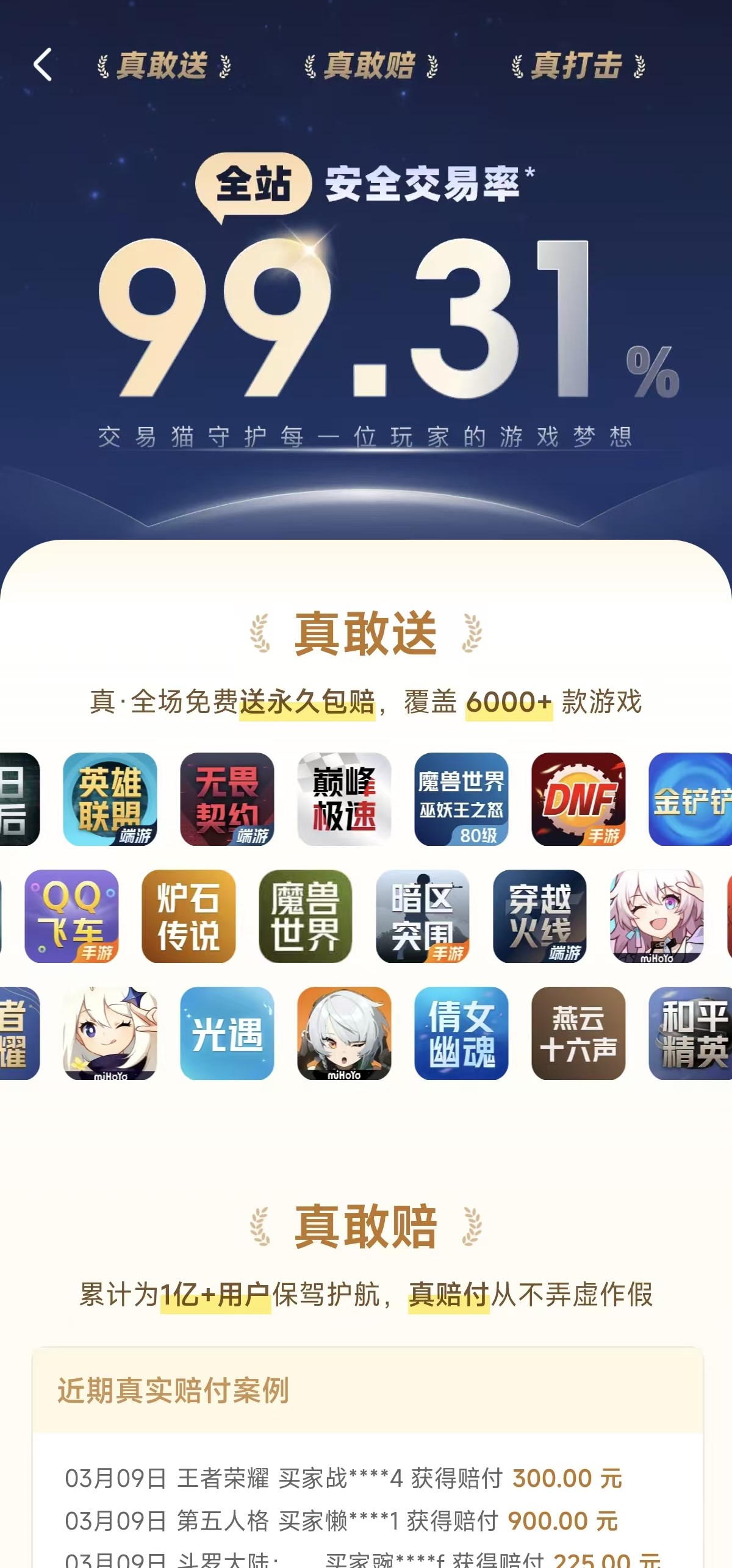 另外大家在购买游戏帐号的时候经常遇到那种卖家狮子大开口,或者卖号的时候不知道怎么评估自己的号的价值,担心买卖都吃亏的问题在平台也能解决。交易猫提供了智能的定价功能,可以根据当前游戏的市场行情给出参考的价格,卖家能够在定价的时候更有依据和底气,这样也不用担心卖亏了!对买家而言,依托平台的大数据,市场的定价透明,也不怕被坑了。