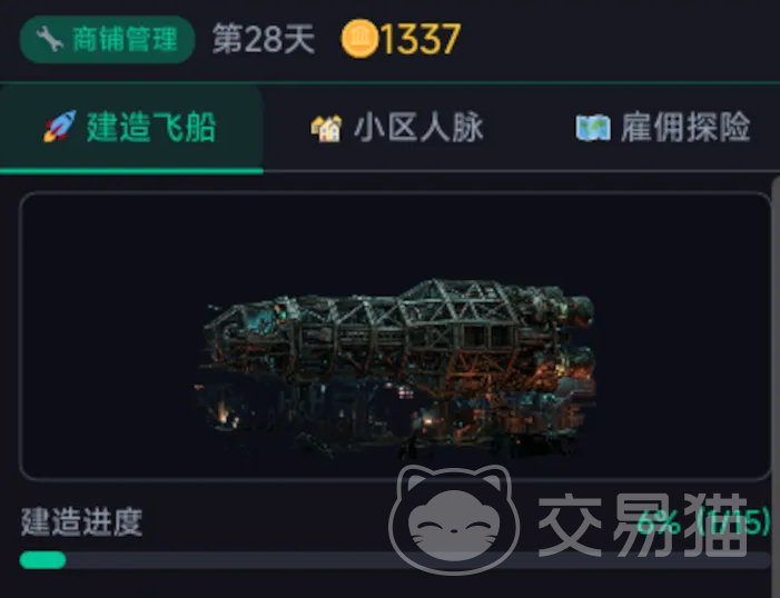 除基础生存物资外,游戏内还设有大量制造类材料,用于建造功能性设施。其中飞船属于核心载具之一,具备跨区域机动能力,是末日环境中保障长期生存的关键装备,玩家需通过收集图纸、组装部件并完成阶段性建造流程方可投入使用。