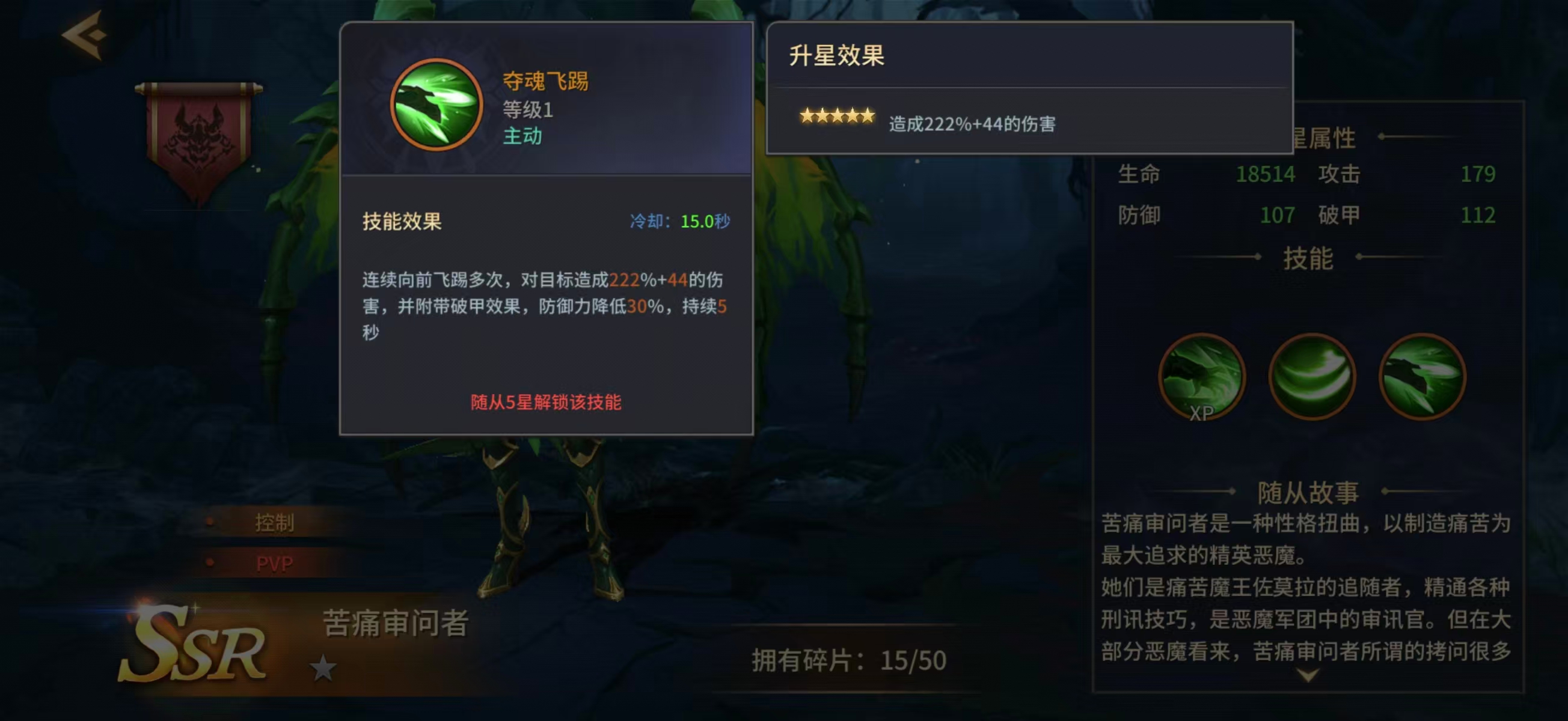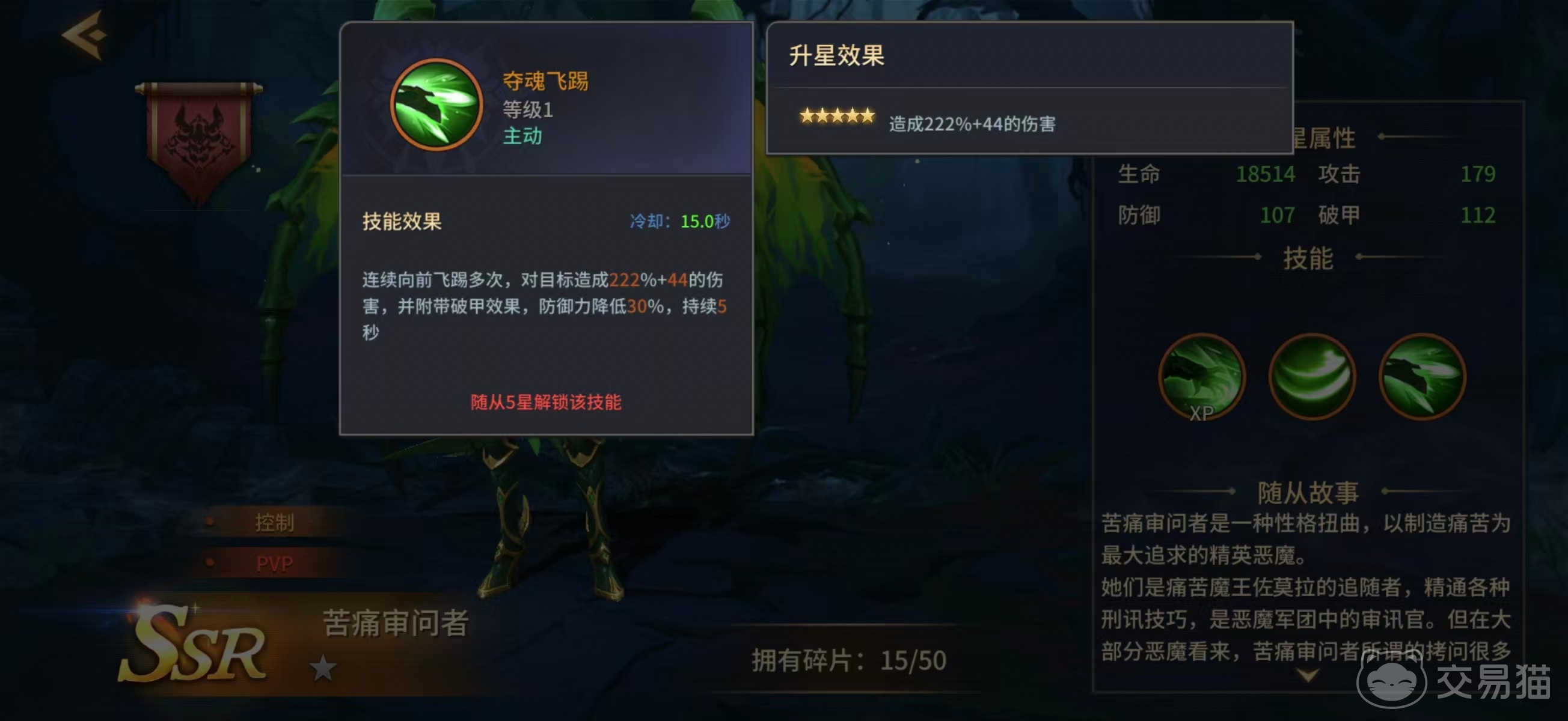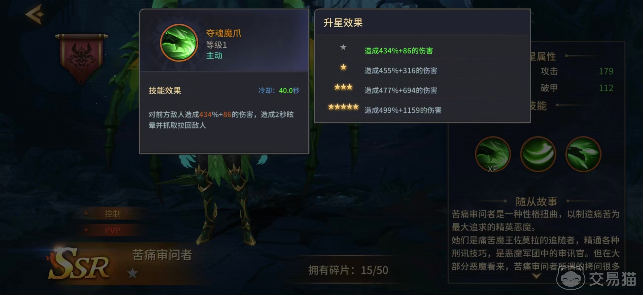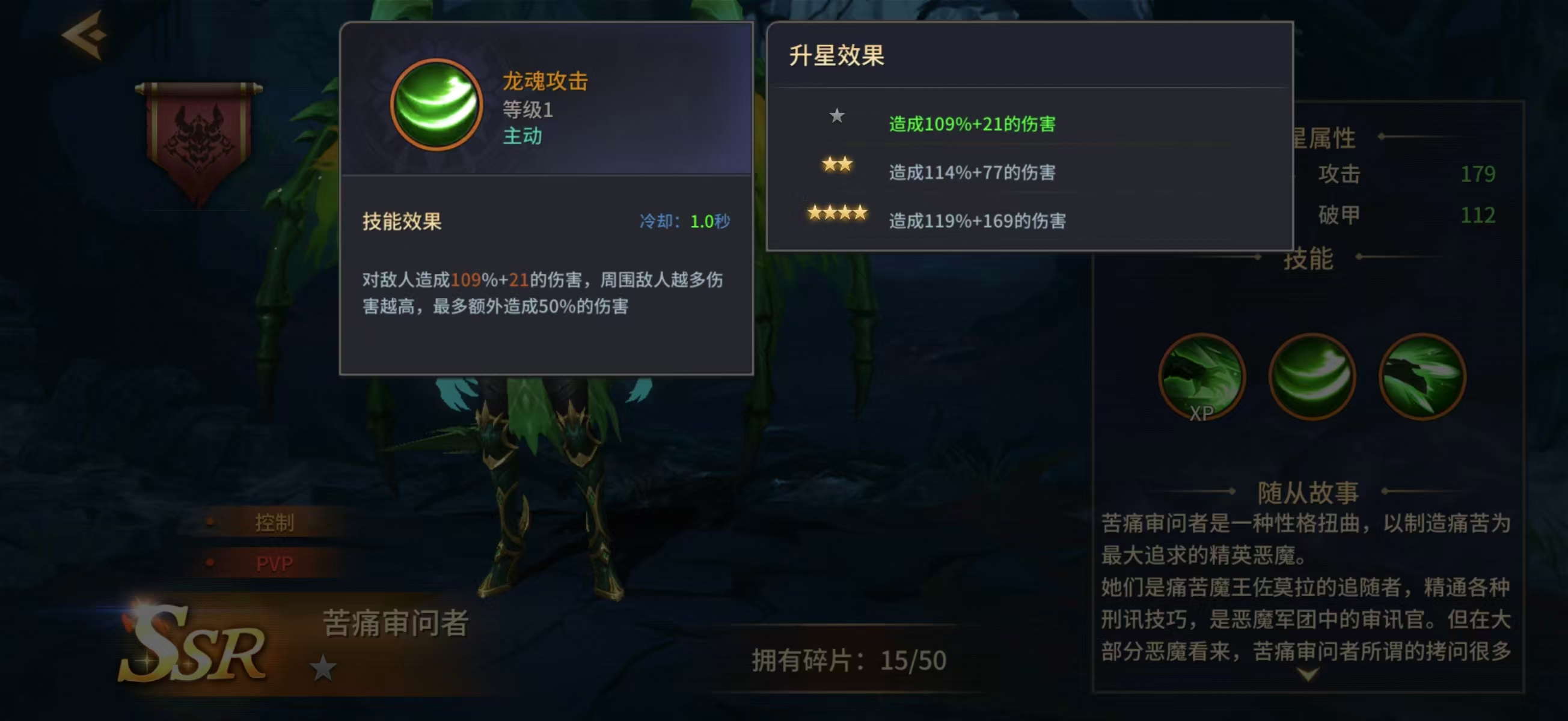 从背景设定来看,痛苦审问者隶属高阶恶魔军团,职司刑讯与精神压制,其战斗风格高度还原了“审讯官”的压迫感。首技能【龙魂攻击】具备范围伤害递增机制:敌方单位数量每增加一名,该技能的基础伤害即获得提升,因此在应对密集分布的低阶敌人时效率极高,是PVE清怪环节的重要辅助手段。