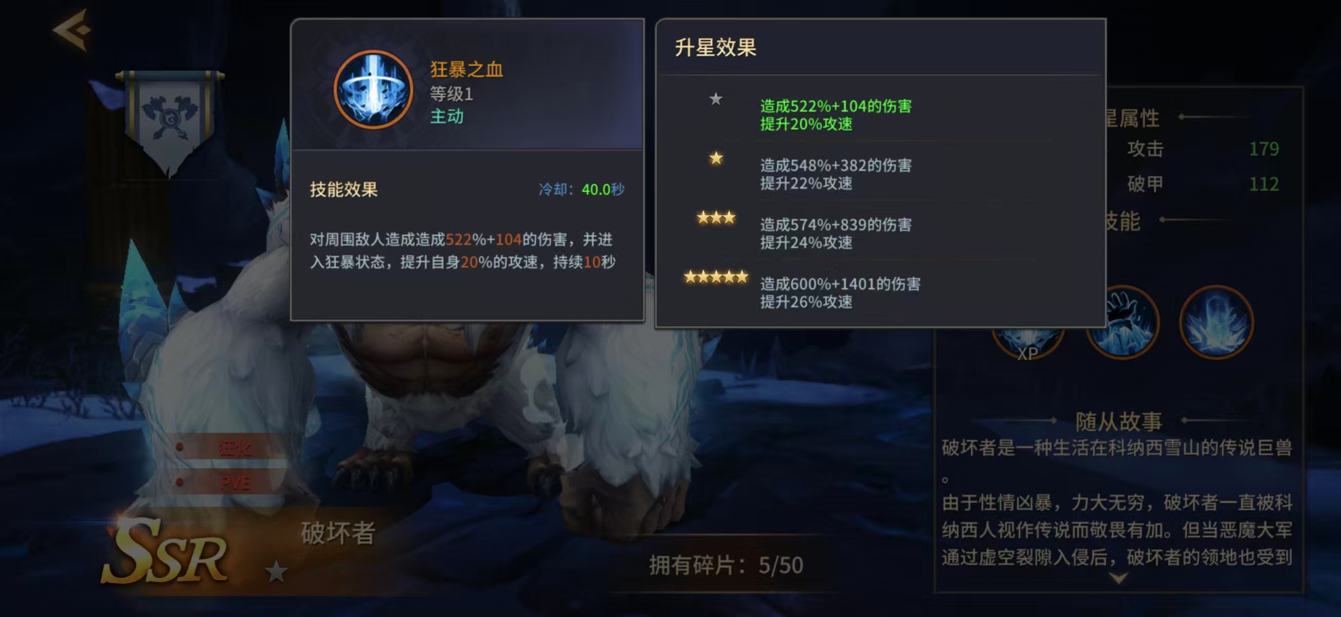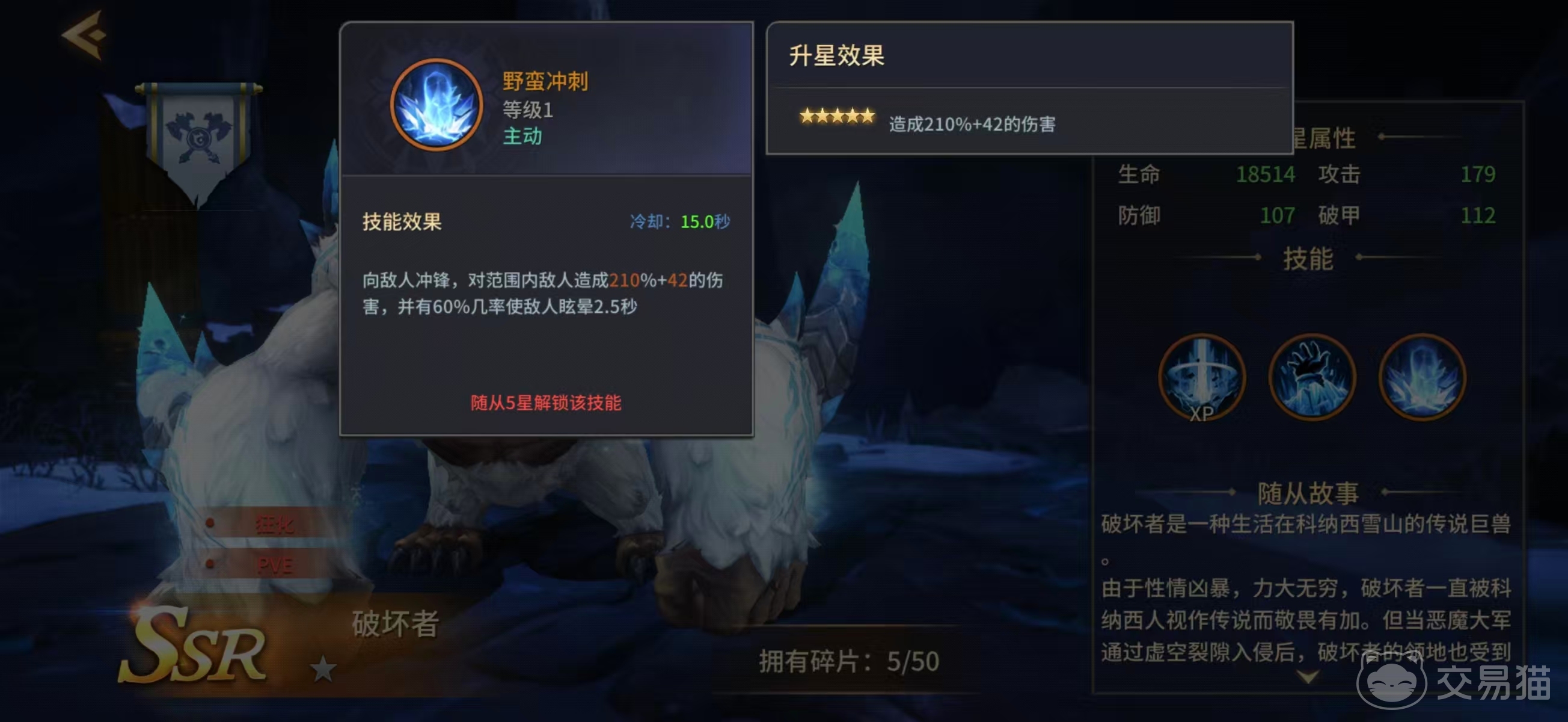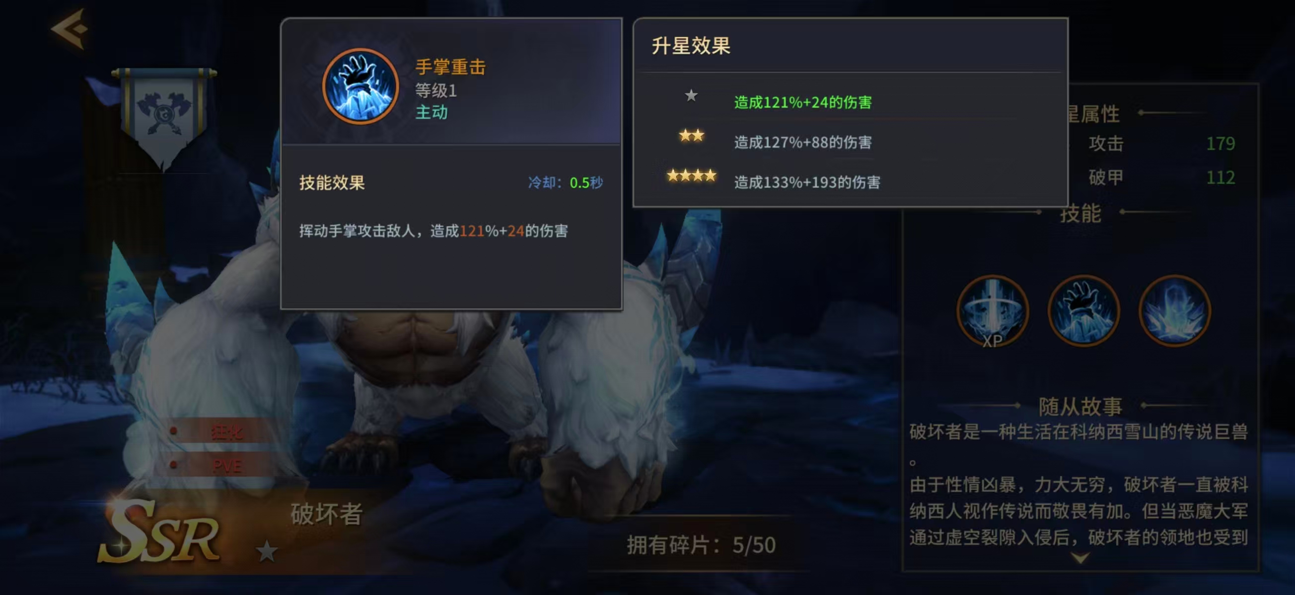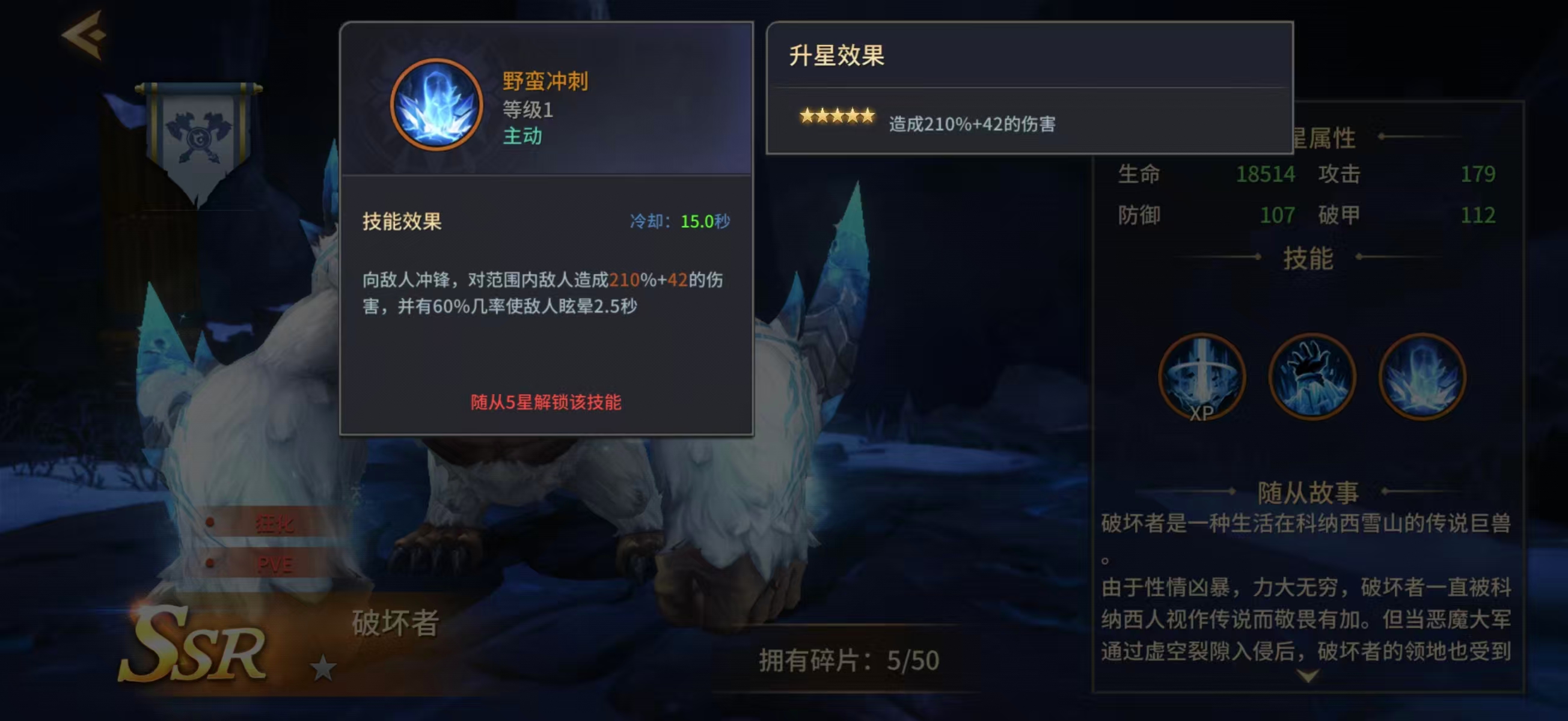 虽然眩晕效果为概率触发,但60%的稳定触发率显著提升了其战术容错率。在缺乏专职控场伙伴的配置下,破坏者可作为过渡期核心控制单位参与竞技场对抗,有效限制敌方关键角色的技能衔接节奏。