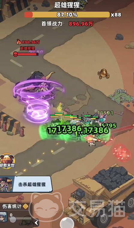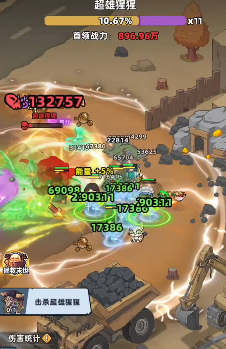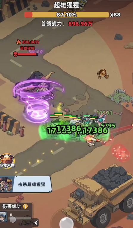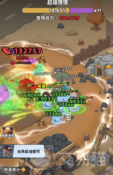 在常规战斗阶段,Boss主要使用三连挥击类近战动作,攻击判定窗口较宽、前摇明显,且单次伤害倍率较低。玩家可通过小幅横向位移轻松规避;即使偶有命中,依靠携带的治疗型宠物(如回血兔或绷带猴)即可即时恢复,无需额外操作干预。