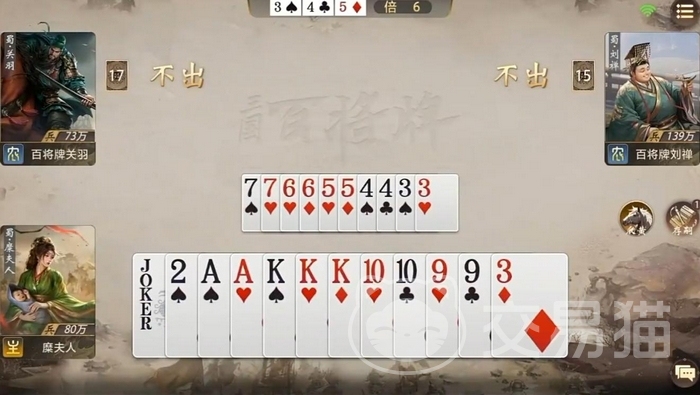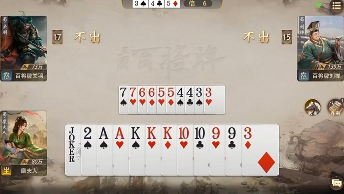 综上,《三国:百将牌》虽以传统斗地主为基底,但通过系统化植入三国角色特性、身份机制与动态局势演算,在保留易上手特性的前提下构建出具备辨识度的策略卡牌新形态。其研发主体为七星工作室,发行方为哔哩哔哩游戏,与游卡无任何关联。