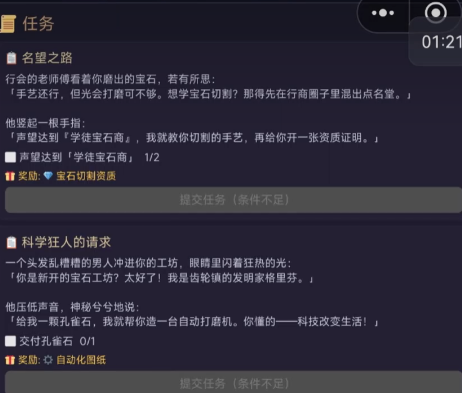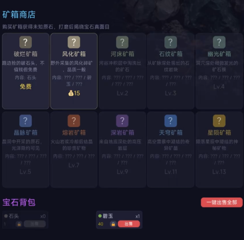 初始即配备基础打磨台,支持对采集所得原石进行物理处理。不同种类矿石经打磨后存在差异化转化概率,部分可生成具备市场价值的宝石成品。该机制构成游戏经济循环的核心支点:自用可提升角色鉴定等级与工艺熟练度,出售则用于兑换高级工具、拓展工坊空间或参与拍卖行竞标。