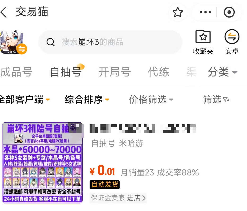 以上就是oppo游戏账号交易平台有哪些的全部信息了,交易猫平台的渠道服账号数量还是可观的,而且交易流程全程正规,同时还有安心购的服务权益,足够玩家们在交易时获得较好的体验,建议可以使用起来了。