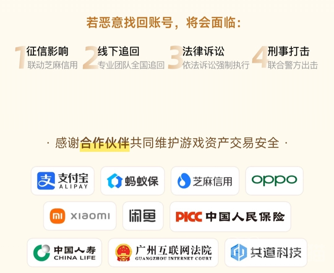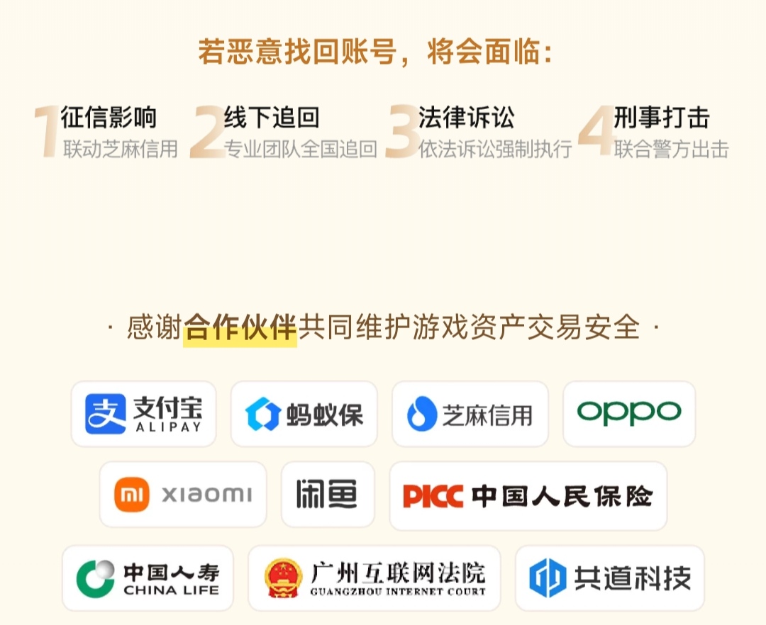 由于steam本身是游戏商店,那么购买的账号内很可能还有前主的其他游戏资产,所以不少小伙伴就会担忧是否会有找回的风险。交易猫对于恶意找回账号是绝不容忍的,平台不仅能联动芝麻信用影响其征信,还有专业团队负责线下追回、法律诉讼并最终诉诸法律。