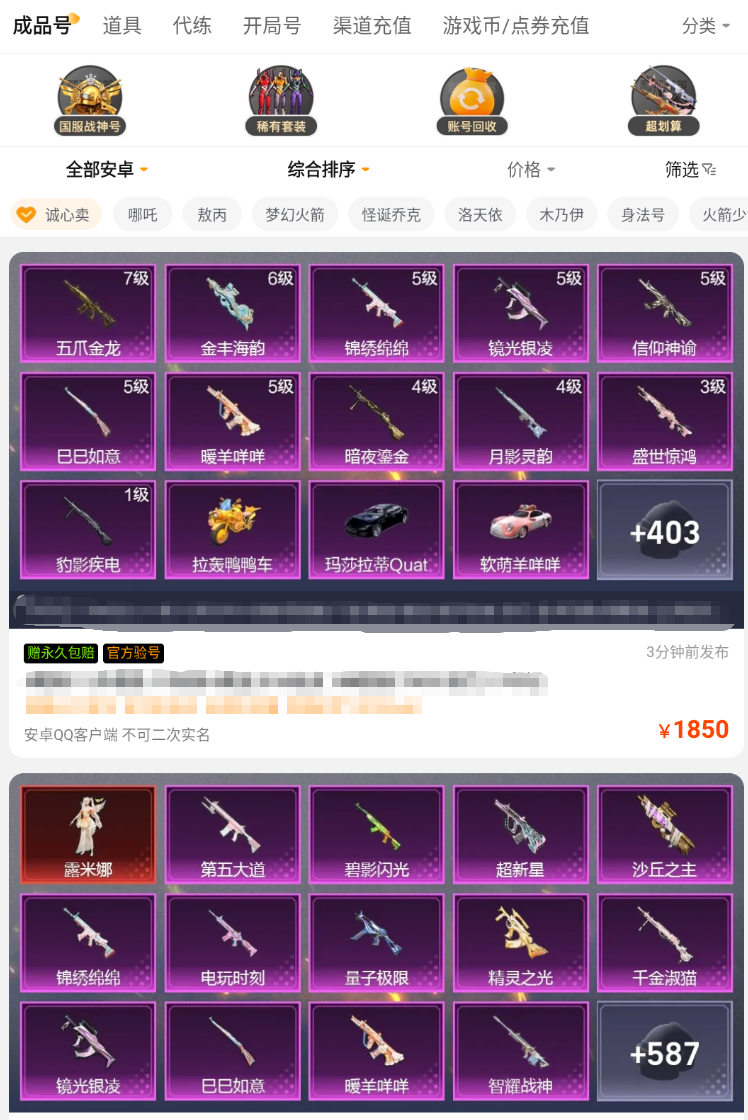 交易猫几乎涵盖了市面上所有的游戏,并全部给它们开通了交易专区,用户借助专区内强大的分类和检索功能可以非常便捷地找到符合自己喜好的优质账号或者商品。卖家也可以通过搜索了解时长行情,也有利于自己商品的定价。