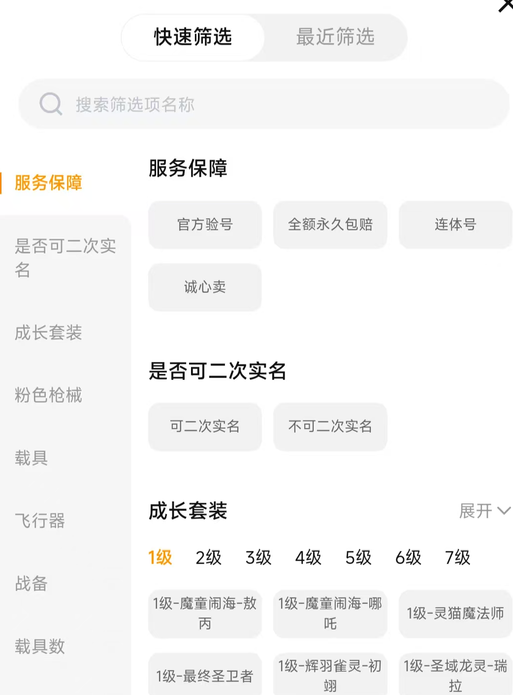 有些玩家可能没什么时间,所以不想在挑选上浪费精力,那么是可以使用交易猫的快速筛选功能,这边的筛选功能是比较智能的,基本上会将重要的道具直接作为选项进行选择,可以节省玩家们的时间,而且筛选以后,其账号的精准度也会更加高哦。