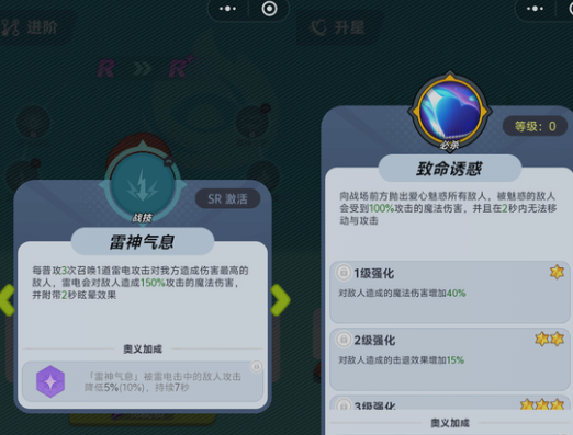 群体控场需求下,夏尔美是开荒阶段稀缺的功能型红卡。其大招“致命诱惑”可使范围内敌人在两秒内无法行动且无法攻击,同时附加魔法伤害;普攻累计三次后自动触发“雷神气息”,锁定敌方高威胁输出单位并施加眩晕效果。该角色大幅降低队伍容错压力,尤其适用于机制复杂的精英战与Boss战。