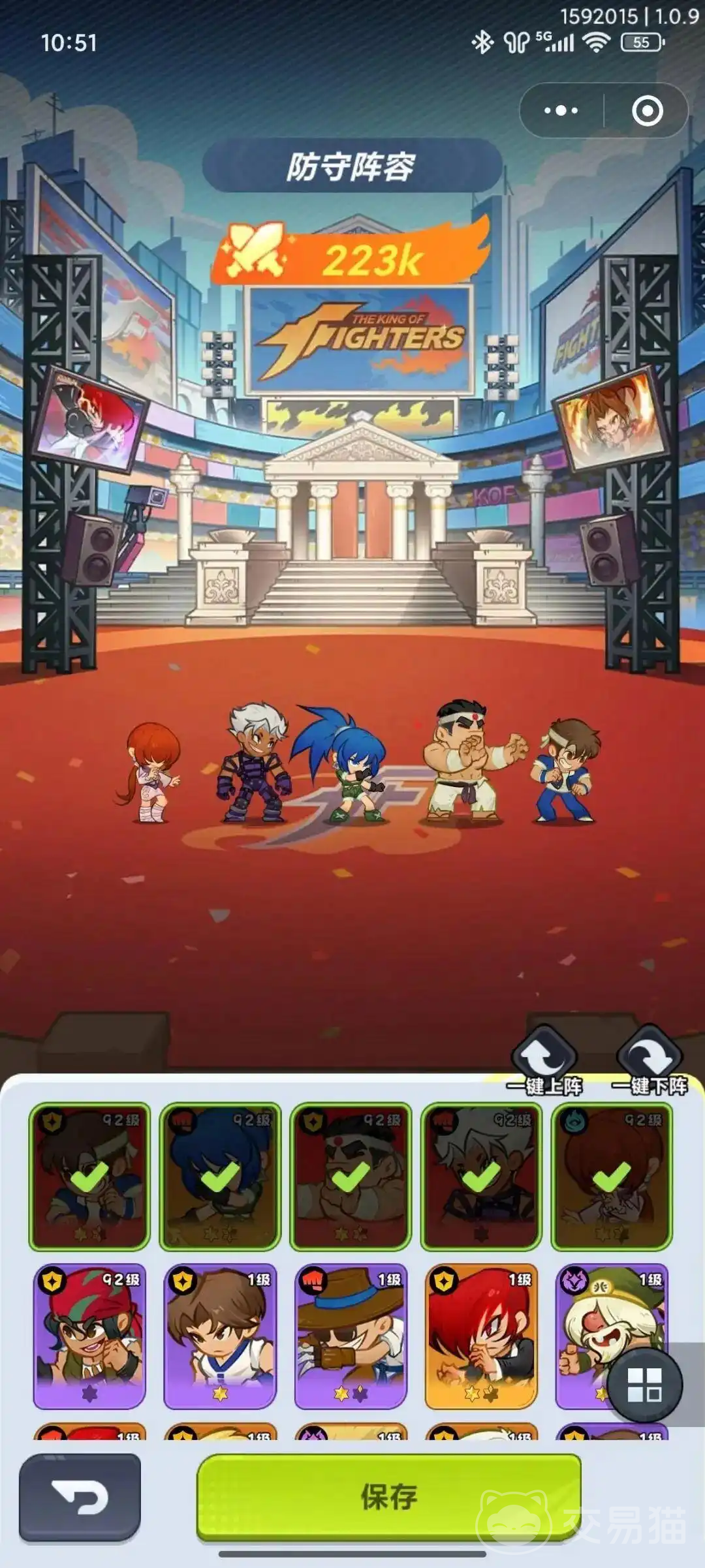 阵容构建是决定爬塔上限的核心变量。当前版本中,两套高适配性配置已通过大量实战验证:其一为“控制压缩流”,由玛丽、八神庵、大蛇、夏尔美、神乐组成;其二为“四保一丽安娜流”,成员包括陈国汉、玛丽、大蛇、椎拳崇、丽安娜。