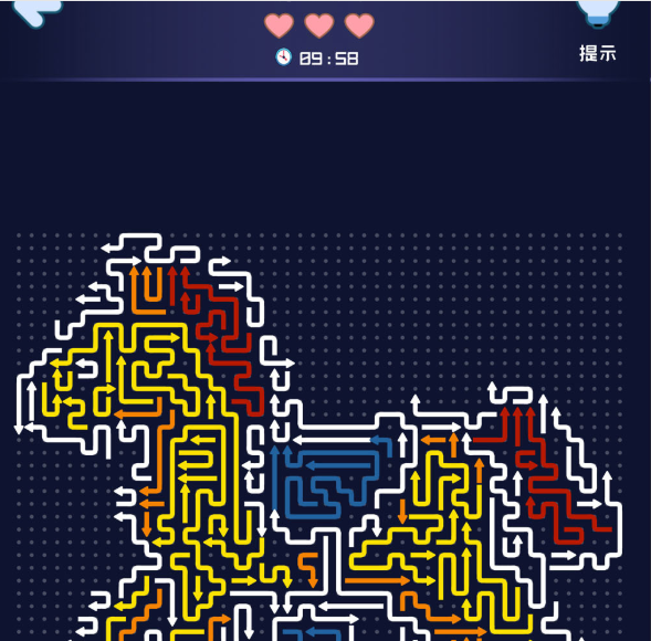 本作以极简主义交互逻辑重构消除玩法——玩家仅需轻点屏幕上的箭头图标,该箭头即沿自身指向方向滑动,触碰同类型图案后完成消除。表面操作仅需一次点击,实则要求预判多步连锁反应:箭头布局呈网格化交错分布,移动路径相互影响,稍有疏忽便可能导致关键通路阻断。这种“易上手、难精通”的设计,使游戏兼具休闲性与思维挑战性。