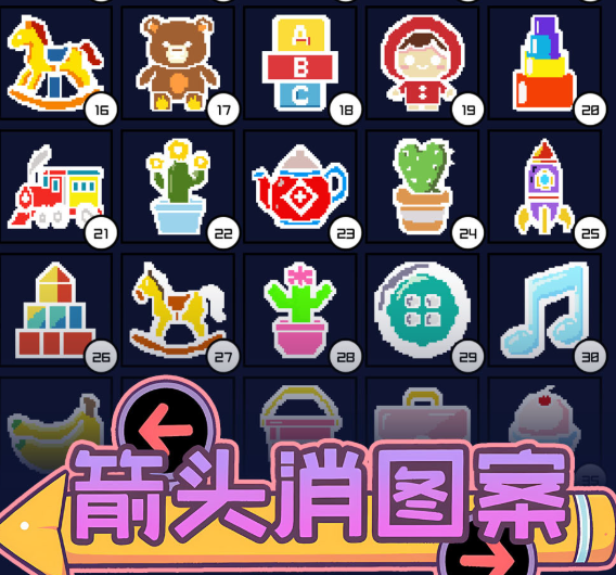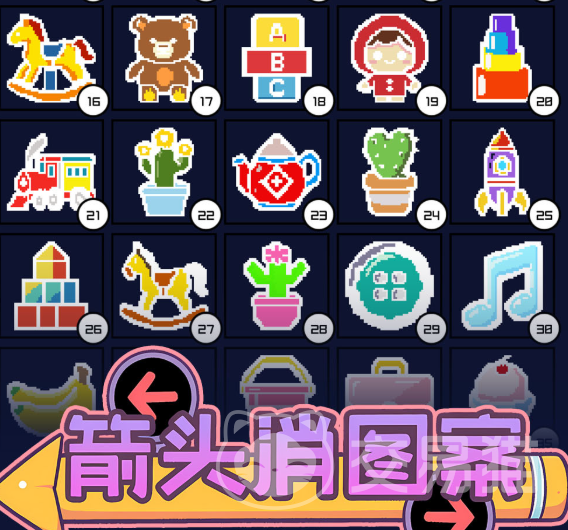 《箭头消图案》是一款以方向逻辑为核心的消除类休闲游戏。玩家无需学习复杂规则,也无需记忆技能树或角色属性——所有交互仅围绕一个动作展开:点击任意箭头,它即刻沿自身指向滑出屏幕边界。目标明确:清空当前关卡中全部箭头即为通关。