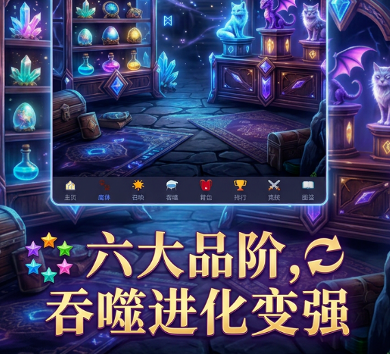 本作摒弃传统数值堆砌式养成逻辑,以“吞噬即成长”为核心机制重构魔宠培养体系。玩家无需反复刷图、完成冗长任务链,仅需引导魔宠吞食对应素材,即可实现等级跃迁与战力突破,大幅降低操作门槛与时间成本。