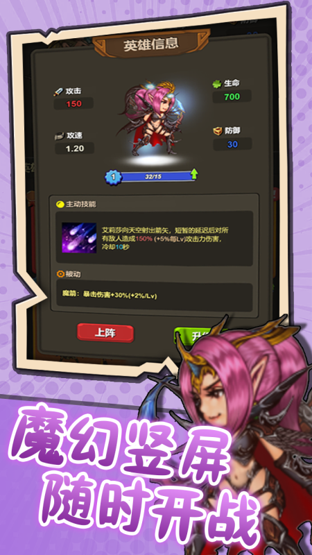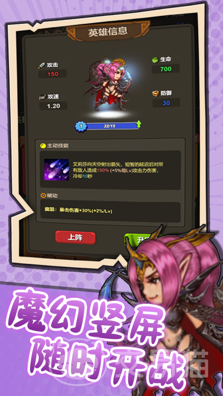 操作层面采用单手适配方案,界面响应灵敏,适配多类移动设备。日常任务与关卡通关奖励可逐步解锁新英雄及技能节点,助力阵容稳步成型。游戏注重长线体验设计:每次完整通关都将扩充可用技能池,确保重复游玩时仍保有新鲜感与探索欲。英雄成长路径清晰明确,经验与材料通过常规关卡稳定产出,技能解锁与战力提升过程直观可控,让玩家切实感受到角色进阶的正向反馈。
