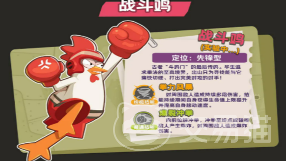 第三位英雄为近战压制型角色——战斗鸡。其技能“爆裂冲拳”具备突进与范围双效伤害特性:路径上敌人承受爆炸伤害,终点区域目标额外叠加一次爆炸判定;终极技能“全力风暴”启动后,对周身多段释放范围伤害,同时提升自身生命值上限并显著增强移动速度,兼顾输出、生存与机动三重维度。