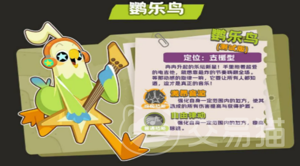 第二位英雄为辅助定位的鹦乐鸟。其技能“自由律动”可对范围内敌方单位施加短暂加速效果,干扰对手走位节奏;核心技能“激昂音波”则作用于己方全体队友,在生效期间显著提升团队输出能力,并附加吸收伤害的护盾,是团战续航与爆发衔接的关键支撑。