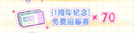 活动期内前七日(即3月27日至4月2日),每日登录均可领取「1周年纪念」免费招募券10张。累计完成全部七日签到,总计可获得70张专属招募券。该券种仅限本次庆典使用,不可兑换、不可叠加至其他卡池,专用于抽取限定角色及特殊演出内容。