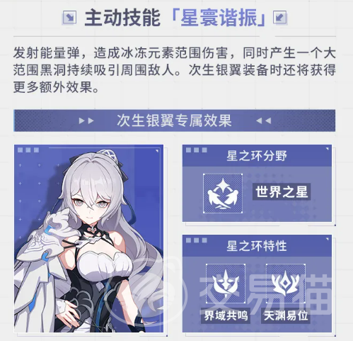 装备「苍雷星梭EX19」后,次生银翼将激活星之环分野中的关键节点——世界之星。随之解锁「界域共鸣」与「天渊易位」两项特性,并开放对应星之环技能分支。此外,全队对敌造成的物理伤害及冰、火、雷、量子、虚数五种元素伤害均获得提升,实现跨角色增益。