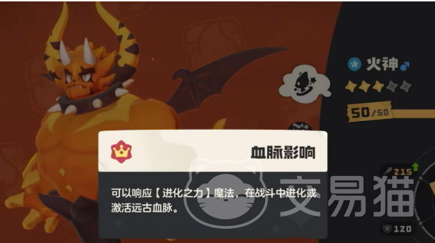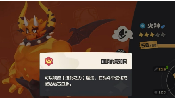 当火神完成首领化蜕变,正式进阶为烈火战神后,其机制发生质变。最核心的调整在于特性“助燃”的持续性升级——该特性不再因换宠离场而清空层数,从而支持长期、稳定的属性叠加。这一改动彻底重塑了技能搭配逻辑。推荐配置为:防御、热身、吹火、暗突袭。“防御”功能不变,仍承担承伤职责;“热身”取代原“力量增效”,效果为使下一次技能威力翻倍,与高层数“助燃”协同可打出极高瞬时爆发;“吹火”成为新核心输出技,每次命中提升自身技能威力20点,随回合推进持续增强,越战越强;“暗突袭”兼具高基础伤害与吸血效果,显著提升续航能力,保障烈火战神在持久战中稳定站场。