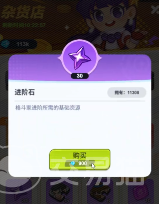 杂货店中唯一具备绝对优先级的付费项,是900宝石兑换30个进阶石。该道具在游戏中获取渠道极少,但消耗刚性极强:角色升星、技能突破、等级上限解锁均依赖它。尤其当主力格斗家进入5星或6星阶段后,进阶石缺口会急剧放大。一旦刷新该选项,无论当前宝石存量多少,均应第一时间完成兑换。历史数据表明,此项投入的战力折算效率远超其他所有宝石消费路径。