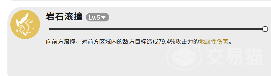 【岩石滚撞】满级伤害为79.4%攻击力,属短CD补刀型技能,主要承担衔接与追击功能,配合主输出技能形成稳定输出循环。
