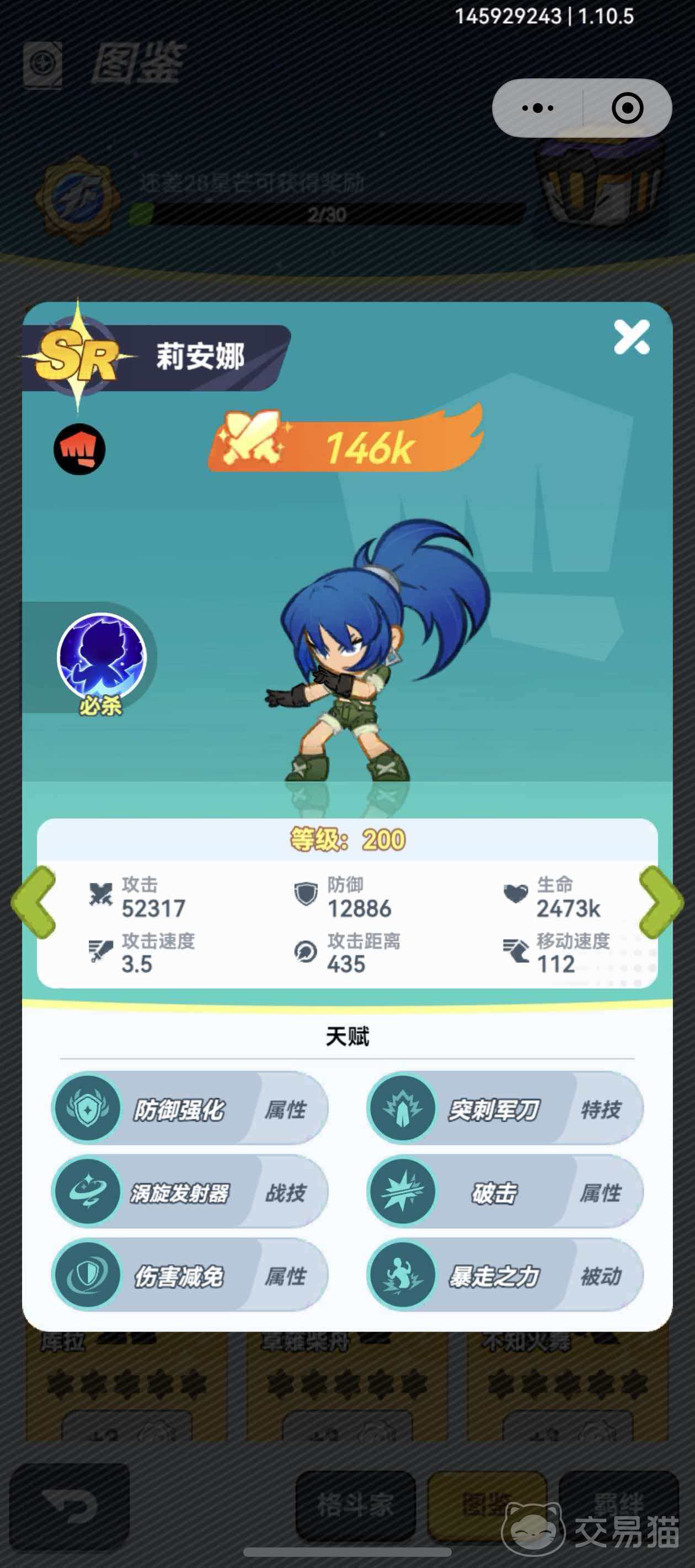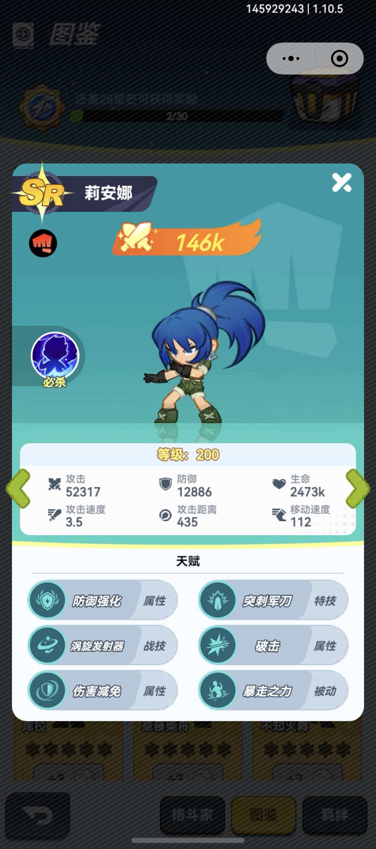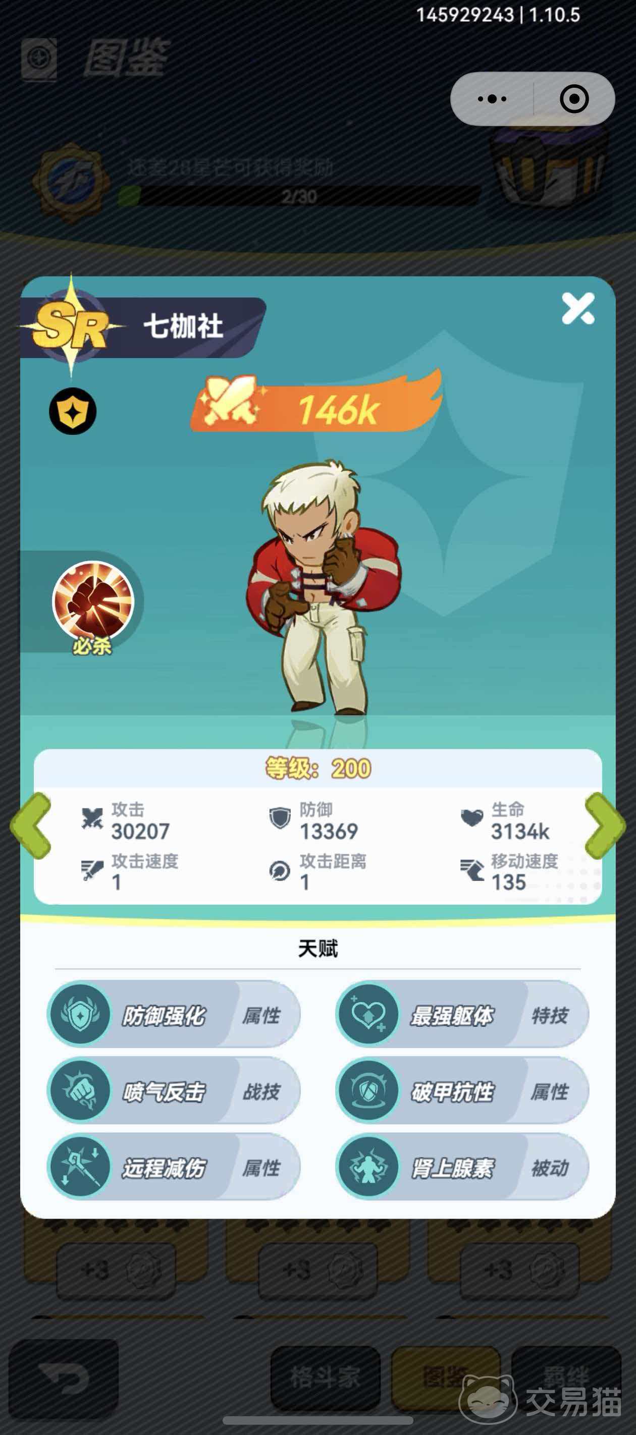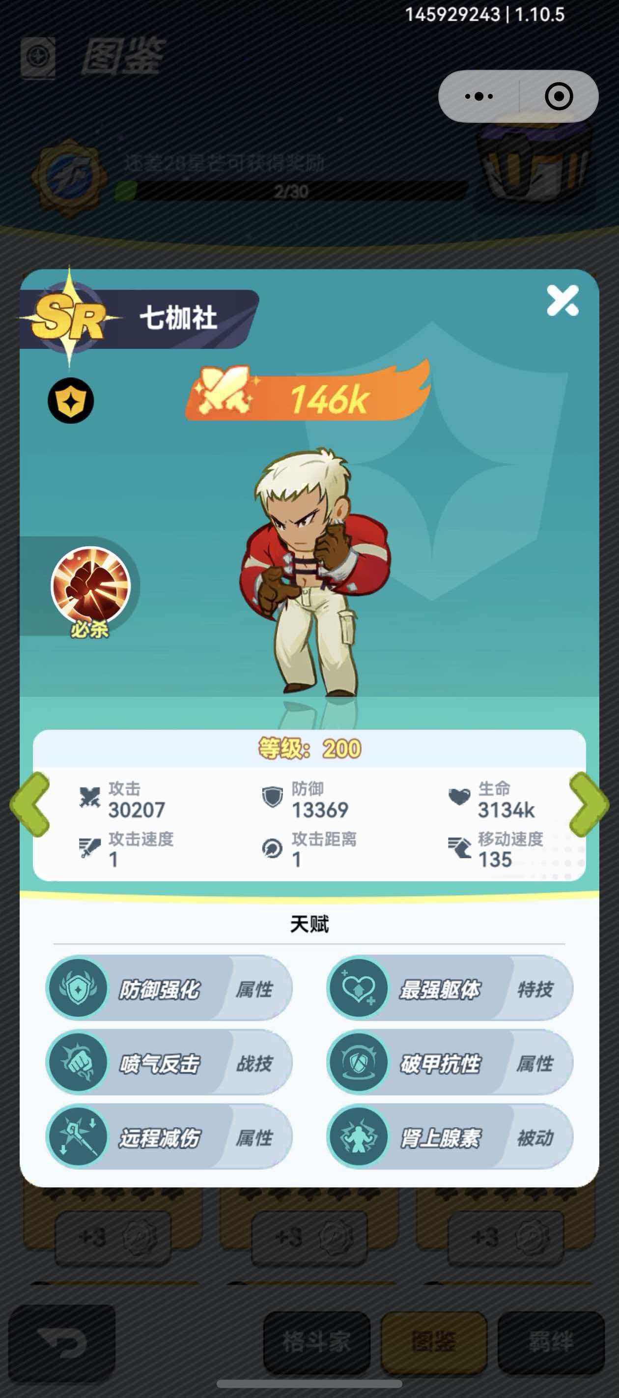 七枷社定位为高稳定性站桩输出者,初始必杀技即可造成930%物理伤害,该数值为当前所有SR格斗家中最高。随着星级提升,将解锁“受击自动反击”特性,触发时附带击退效果,有效打断敌方连招节奏并制造输出窗口。其技能组设计强调持续压制与反制能力,在中后期PVE与部分PVP场景中表现尤为突出。