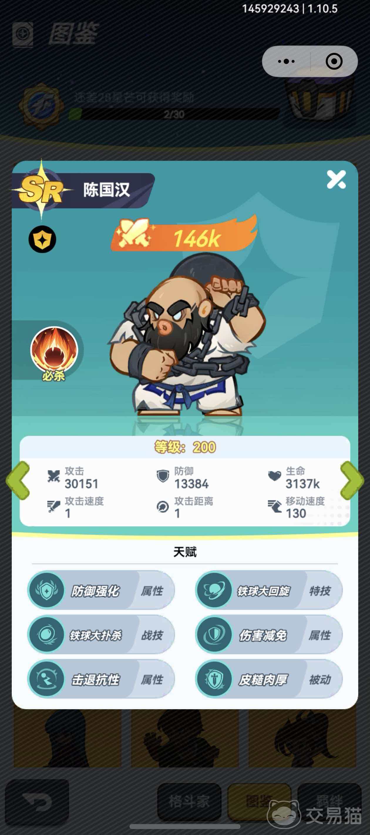 陈国汉属于兼具承伤与突进功能的前排格斗家。其必杀技具备强制位移效果,可将目标驱赶至战场边缘区域,形成集火优势。当升至SSR品质后,将激活“铁球大回旋”技能,该技能不仅弥补了原有击退距离不足的问题,还附加控制免疫效果,使其在面对强控阵容时仍能稳定进场,实现攻防一体的战术价值。
