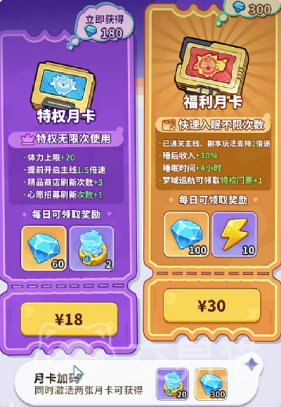 若日常活跃度较高,12元周卡值得纳入考虑:七日内总计可领取920钻石,有效支撑每日体力补给、基础道具兑换及常规资源积累,资源转化效率明显优于未购卡玩家;双月卡组合则适合计划长期投入的用户,进一步放大周期性收益。