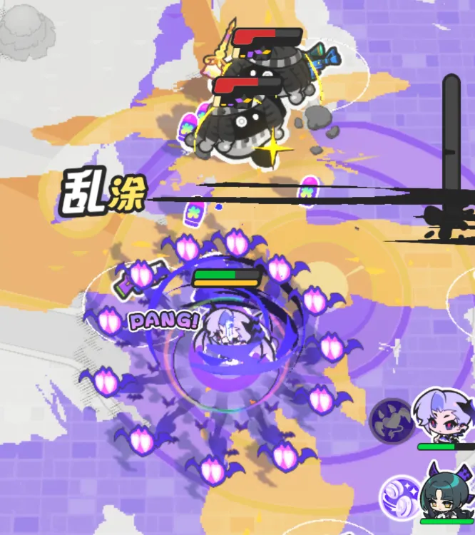洛琪的核心机制围绕“惊喜扭蛋”展开:其特殊技向目标投掷一枚随机效果扭蛋,依据扭蛋类型触发对应伤害或控制;当角色处于红色主导色状态时,该技能可一次性释放3枚扭蛋,大幅提升爆发节奏。大招为持续扫射型范围攻击,炮弹命中后造成AOE伤害,并对目标附加随机减益效果,适用于清杂与压制双场景。