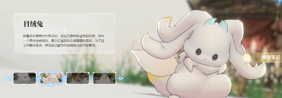 在《蓝色星原旅谣》的世界观设定中,玩家可邂逅数十种风格迥异的奇波伙伴,其中“目绒兔”凭借极具辨识度的视觉设计脱颖而出——圆润身形、湿润双眸、垂落的长耳呈现错视结构,正侧视角下均可见两对不同朝向的绒质长耳,整体气质柔弱温驯,具备鲜明的幼态萌系特征。作为光属性奇波,其定位为团队辅助型角色,兼顾治疗、防御增益、架势干扰与濒死反哺等多重功能。