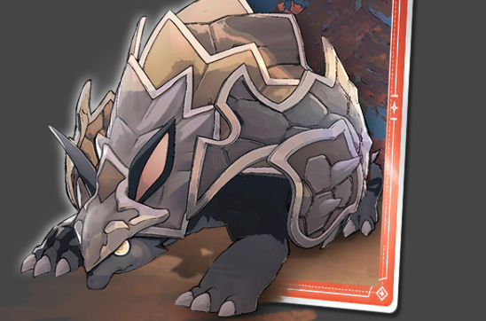 滚地犰体表覆盖厚重骨质甲胄,神态看似迟钝温顺,实则兼具被动反击与主动控场能力。其甲壳缝隙可间歇喷发高温火焰,配合低重心滚动姿态,在生态位中构建出难以突破的防御闭环。