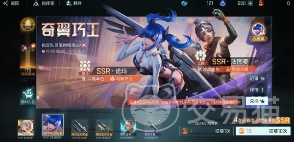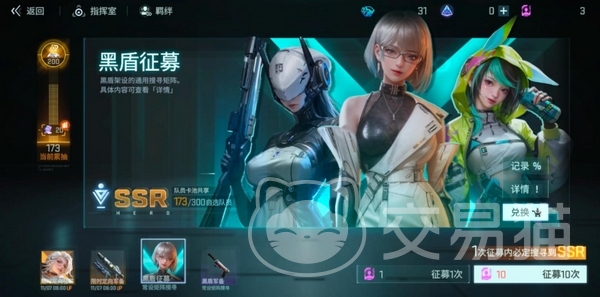 游戏内设有两类主要卡池:限时定向征募与黑盾征募。前者对应UP角色池,采用双保底机制——小保底为70抽必得两位UP角色中的一位;大保底则在未获得另一位UP角色的前提下,于第140抽(含小保底触发后累计)必定获取剩余UP角色。后者为常驻池,保底规则为每70抽必出至少一张SSR角色卡,且系统定期发放免费单抽机会。