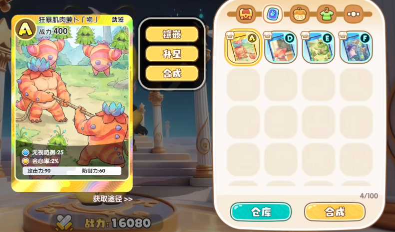 合成操作需消耗两张卡牌,系统采用“主卡+辅卡”结构:高等级卡牌作为主卡,低等级或同等级卡牌作为辅卡。当主卡等级高于辅卡时,有概率生成更高阶卡牌;若两者等级相同,则产出结果为同等级卡牌。因此,持续获取高品质卡牌是提升合成成功率与产出质量的基础策略。