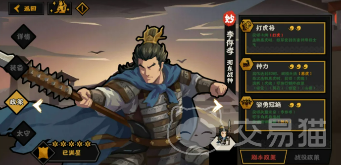综合来看,李存孝属于典型的进攻导向型名臣,强调主动施压、节奏掌控与资源转化效率。其玩法不依赖长期消耗,更适合偏好快节奏推进、重视战场主动权的玩家。若搭配具备控场能力或加速资源积累效果的其他名臣,协同增益效果尤为显著。值此五代乱世开局之际,这位飞虎将军无疑是值得优先培养的核心战力之一。