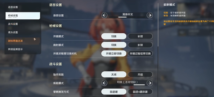 枪械参数建议维持出厂默认值,无需手动调整灵敏度或后坐力补偿系数。战斗设置中,“始终疾跑”功能需主动关闭——该选项会持续占用移动资源,在高帧率对抗场景下易引发输入延迟,干扰压枪节奏。攀爬触发逻辑应设为“前进+跳跃”双键组合,避免在压制射击过程中误触地形攀爬,导致角色突然位移暴露于敌方视野。