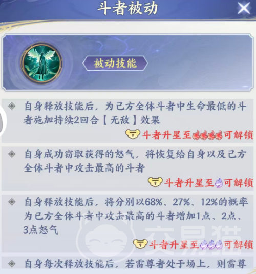 当凤清儿与雷尊者共同登场时,二者可触发协同增益:双方均提供15%的生命值加成,大幅强化队伍整体承伤能力。这一组合在持久战与多波次敌人压制中尤为关键。凤清儿的核心机制围绕“窃怒”展开——每次成功命中敌方目标,均有概率转移其怒气至我方单位。怒气是释放大招的前提资源,因此该能力实质上提升了全队大招释放频率,间接增强输出密度与控制覆盖率。