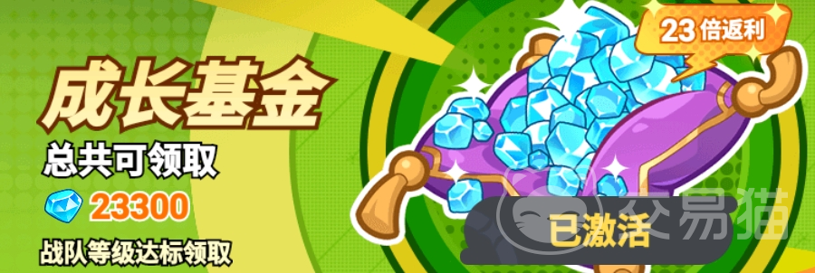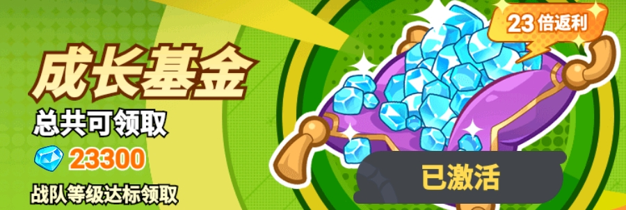 成长基金(88元):按战队等级进度发放,总计可获23300【钻石】。