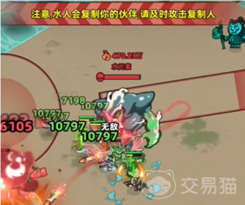 水元素的核心威胁在于双重机制:大范围水浪AOE与角色复制技能。其中,复制技能会生成我方已上阵角色的镜像单位,虽基础攻击力低于本体,但具备完整攻击频率与技能释放节奏。若放任复制体持续输出,极易触发连锁减员。因此,战斗中一旦出现复制单位,必须立即中断主目标输出,优先集火清除,不可拖延。