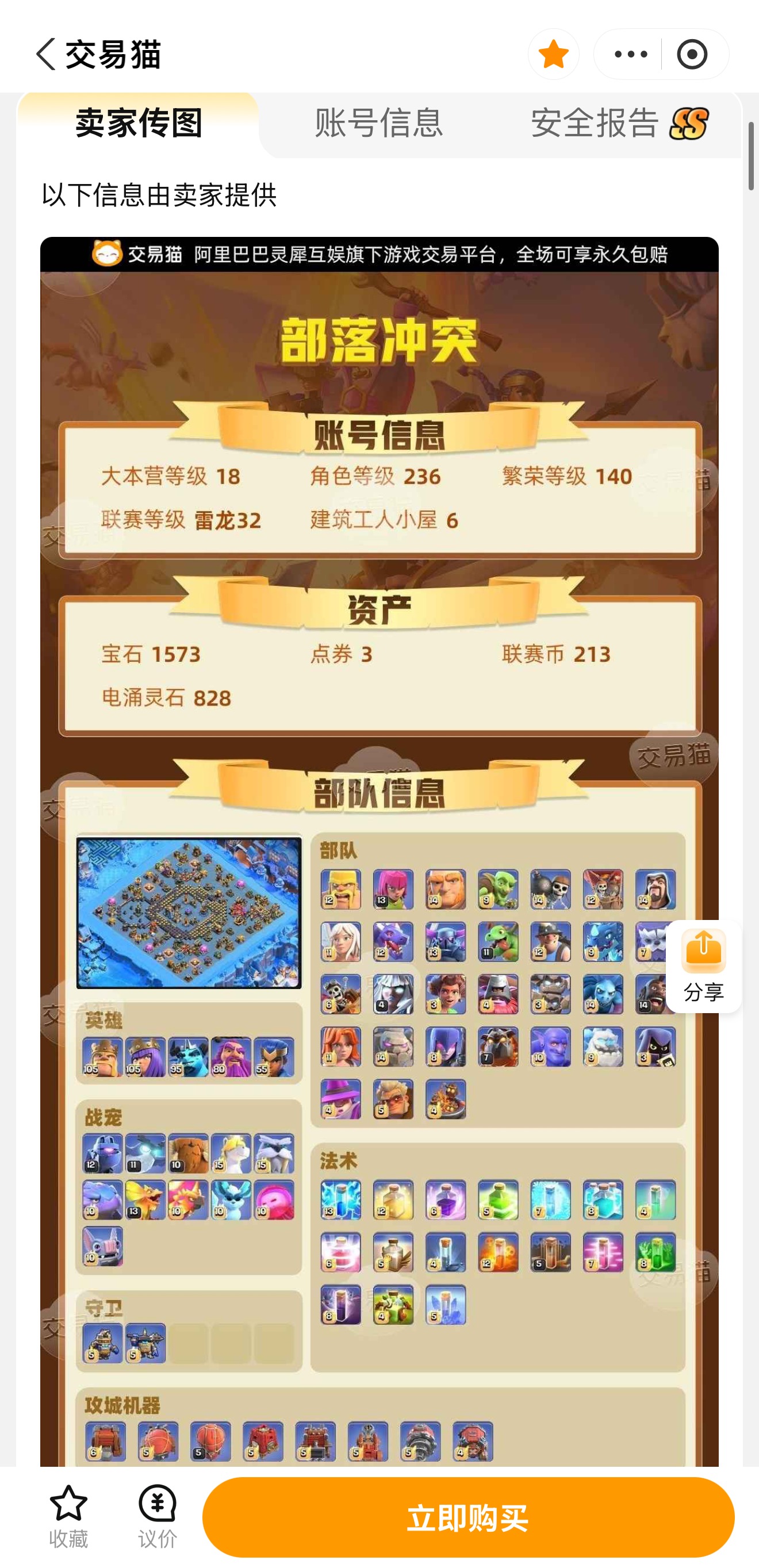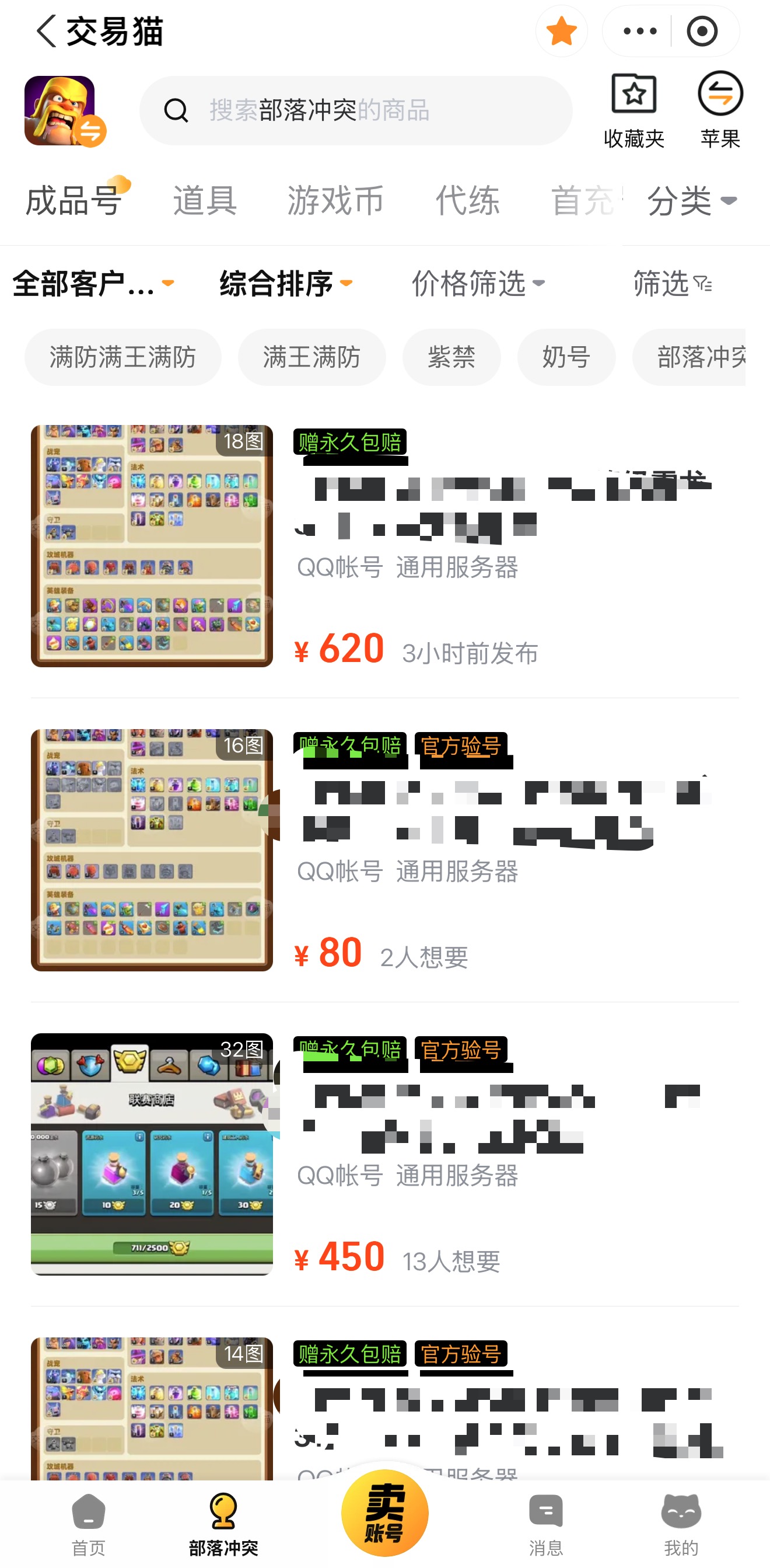 不用在纠结部落冲突的账号怎么卖,闭眼选交易猫就对了!正规的平台背书,操作便捷、定价精准、交易安全,让自己的亲生号能够最大价值的变现。赶快来交易猫上架你的账号,等待卖家吧。