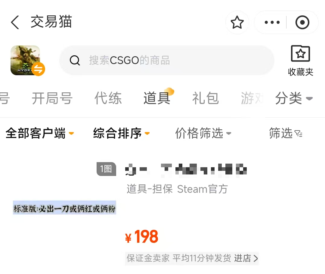 有的玩家不太想要购买成品号,就想要某个限定的皮肤就可以了,那么是可以到交易猫的道具一览寻找的,这边的道具普遍会提供优质的饰品和皮肤,玩家们可以放心购买哦,并且道具的价值相比成品号要低一些,有需求的玩家可以购买哦。