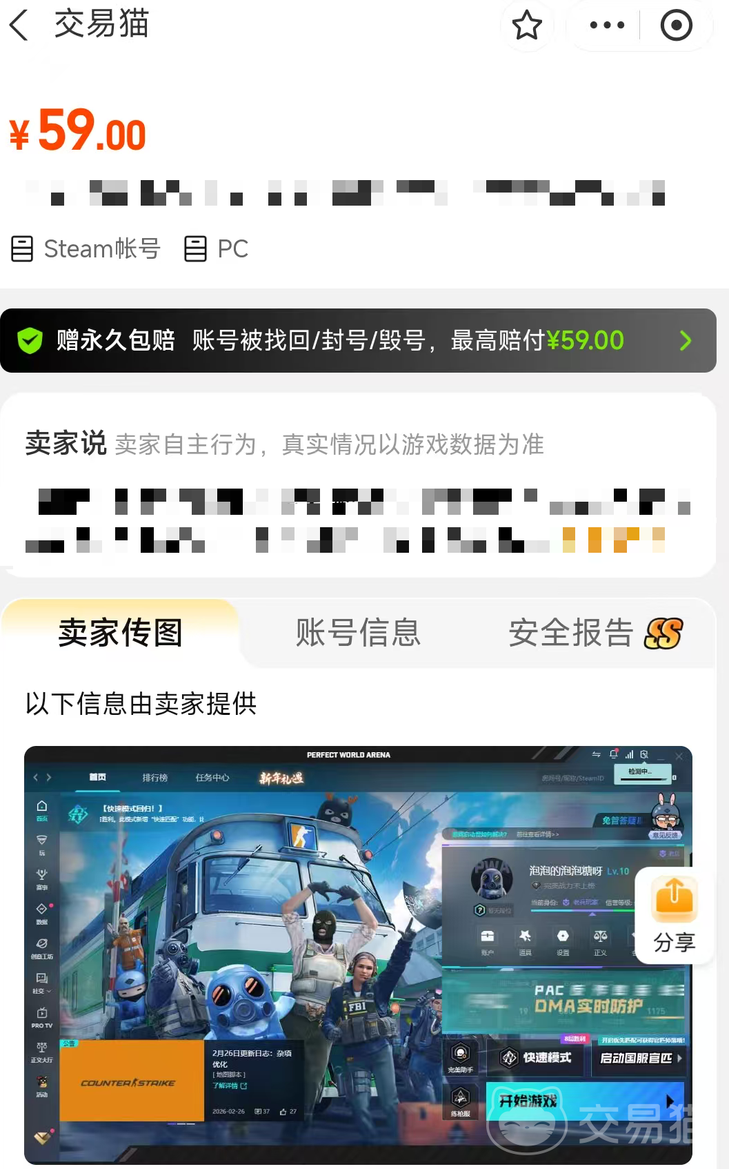 很多玩家在购买账号的时候肯定是担忧安全性的问题,万一购买账号出现被盗或者丢失的情况,会损失很多的金钱,而且心理体验也难受,而交易猫平台就会杜绝这种情况,因为平台内部提供安心购的服务权益,一旦账号出现问题,官方都会进行全额的赔付,而且在后续的交易过程中还有专业的客服上号验证,其安全性是值得肯定,并且平台配备专业千人服务团队,账号发货平均仅需0.5小时,下单后无需漫长等待即可快速上号体验,平均48小时内就能给出解决方案并完成闭环。安卓用户可点击上方按钮一键下载安装,iOS用户直接前往交易猫官网即可正常使用。