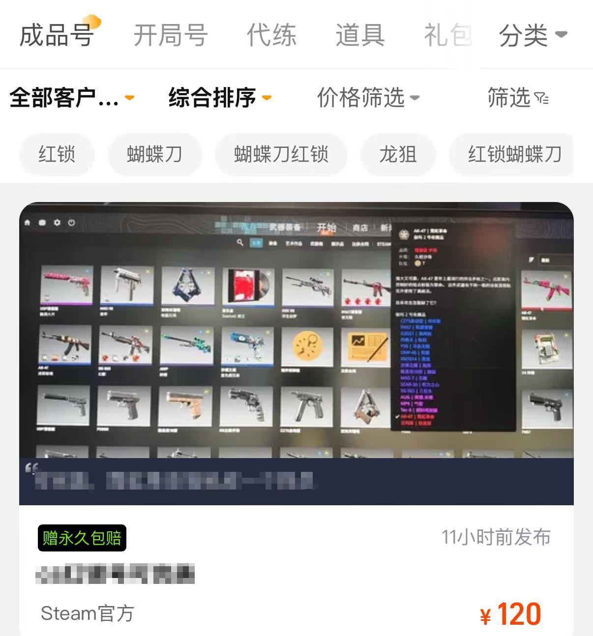 想要购买CS成品号的宝子还能享受永久包赔服务,交易猫是业内唯一一个给所有成品号赠送永久包赔的平台,可见平台对于商品的质量和售后服务多有信心。一旦出现账号找回的情况,核实无误以后就能得到赔付,售后无时间限制,不管买了多久都享受保障。