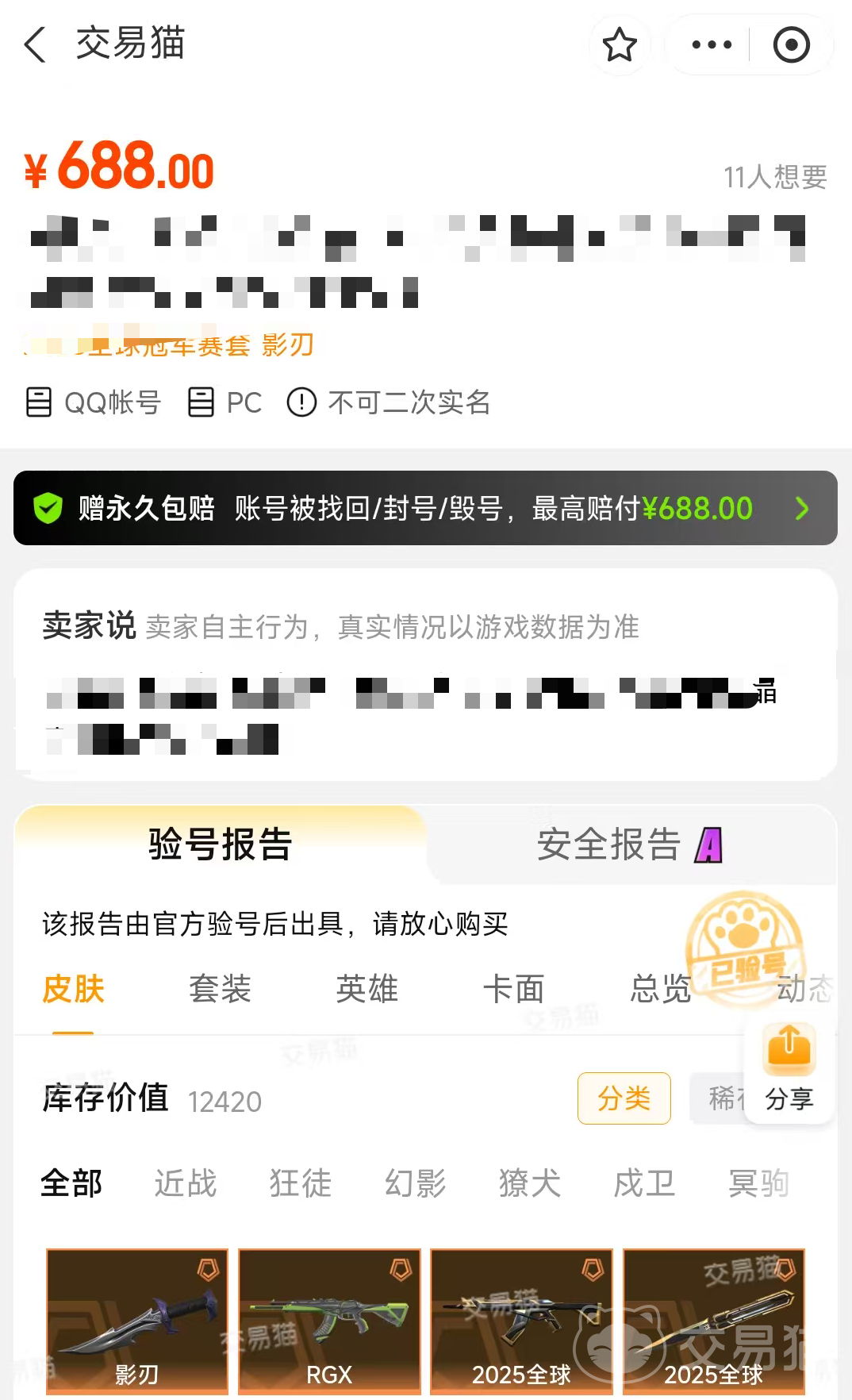 无畏契约作为融合了英雄以及fps射击的战术游戏,其游戏内的英雄数量皮肤还是挺多的,其中有一部分皮肤获取已经绝版了,所以部分玩家想要直接通过购买账号的方式获取,自然无畏契约买号去什么平台好成为了大家关注的重点,那推荐去交易猫平台,该平台买号都是有全程保障的,并且还成为了最安全的游戏交易平台。