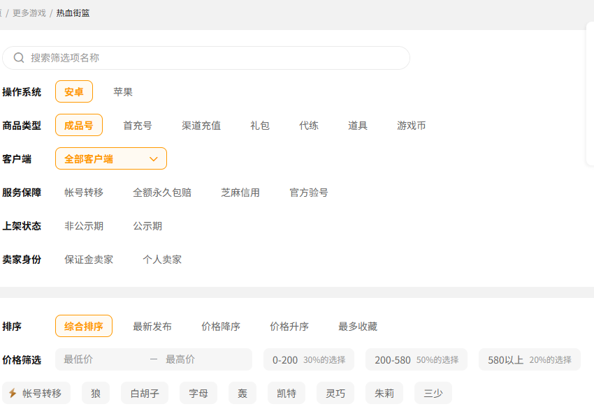 交易猫给热血街篮玩家们提供了丰富的账号类型选择,能满足不同玩家的需求。平台上架的账号涵盖各种品类,有适合新手的初始资源号,上手就能玩;还有性价比很高的成品号,配置齐全,段位高,适合更高要求的玩家;还有最高端的顶配账号,适合那些有终极目标的核心玩家。买家的话通过平台的精准筛选功能,按照价格区间或者客户端类型等不同条件进行筛选,就能快速定位到心仪的账号。同时,平台还提供了热血街篮礼包兑换码、游戏币、代练等一些增值服务,能够一站式满足玩家的多种需求成为热血街篮玩家的全能交易伙伴。