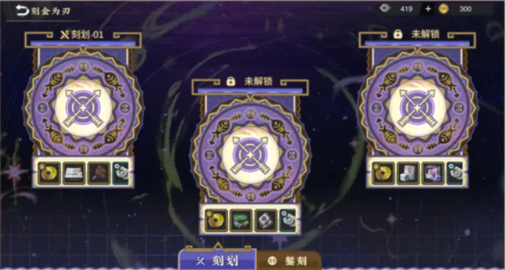 “刻金为刃”玩法包含“刻划”与“鎏刻”两类难度梯度关卡,均产出异形彩珀、鸟金珠等核心资源;成功通关第03关后,将解锁专属纪念品“粼粼游光”,可用于收藏或后续活动联动。