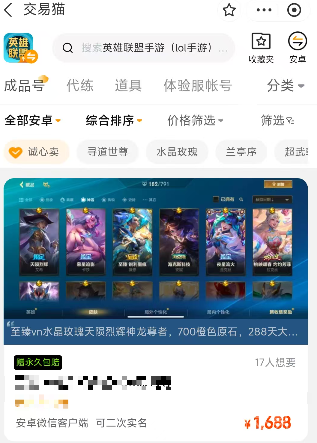 如果玩家们在挑选账号的过程中,感觉一些比较喜欢的账号,价格方面出售得有些贵的话,其实是可以通过议价功能来降低价格的,不过前提是需要玩家们跟商家进行沟通,如果沟通顺利的话,那么就可以通过较低的价格购买哦。